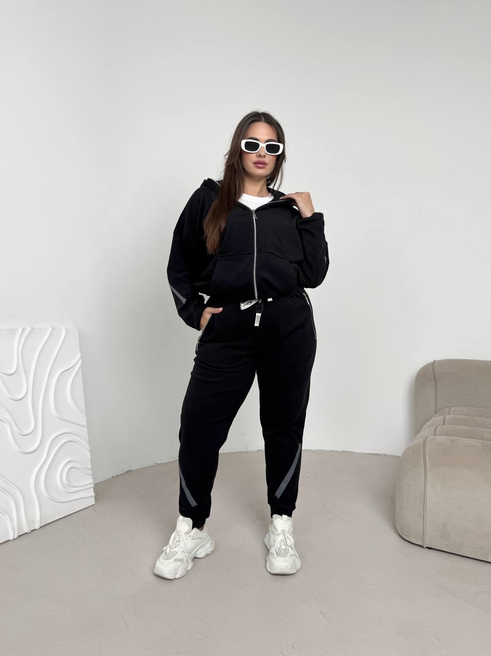 Брюки высокая посадка! ( карманы в боковых швах) + резинке и шнурок! Очень комфортный и крутой костюм. Декор полоски накат