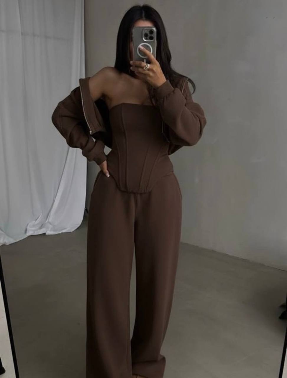 Спортивный Костюм (кофта с капюшоном+корсет+брюки) шоколад