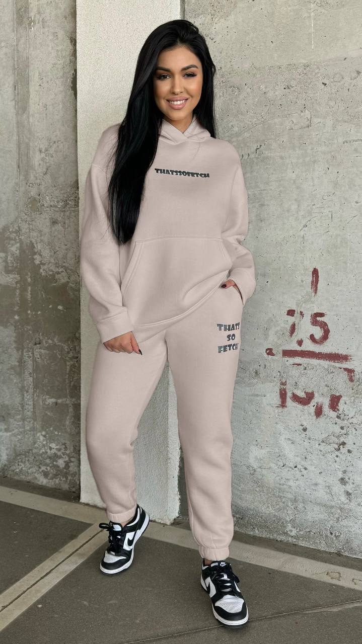 Спортивный костюм Оверсайз (худи с накатом+брюки манжета по низу на резинке) беж