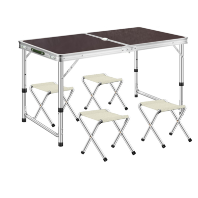 С регулировкой высоты на 3 уровня (550 / 620 / 700 мм) и 4 складными стульями, которые удобно прячутся внутрь конструкции стола, этот комплект легко транспортировать и хранить.