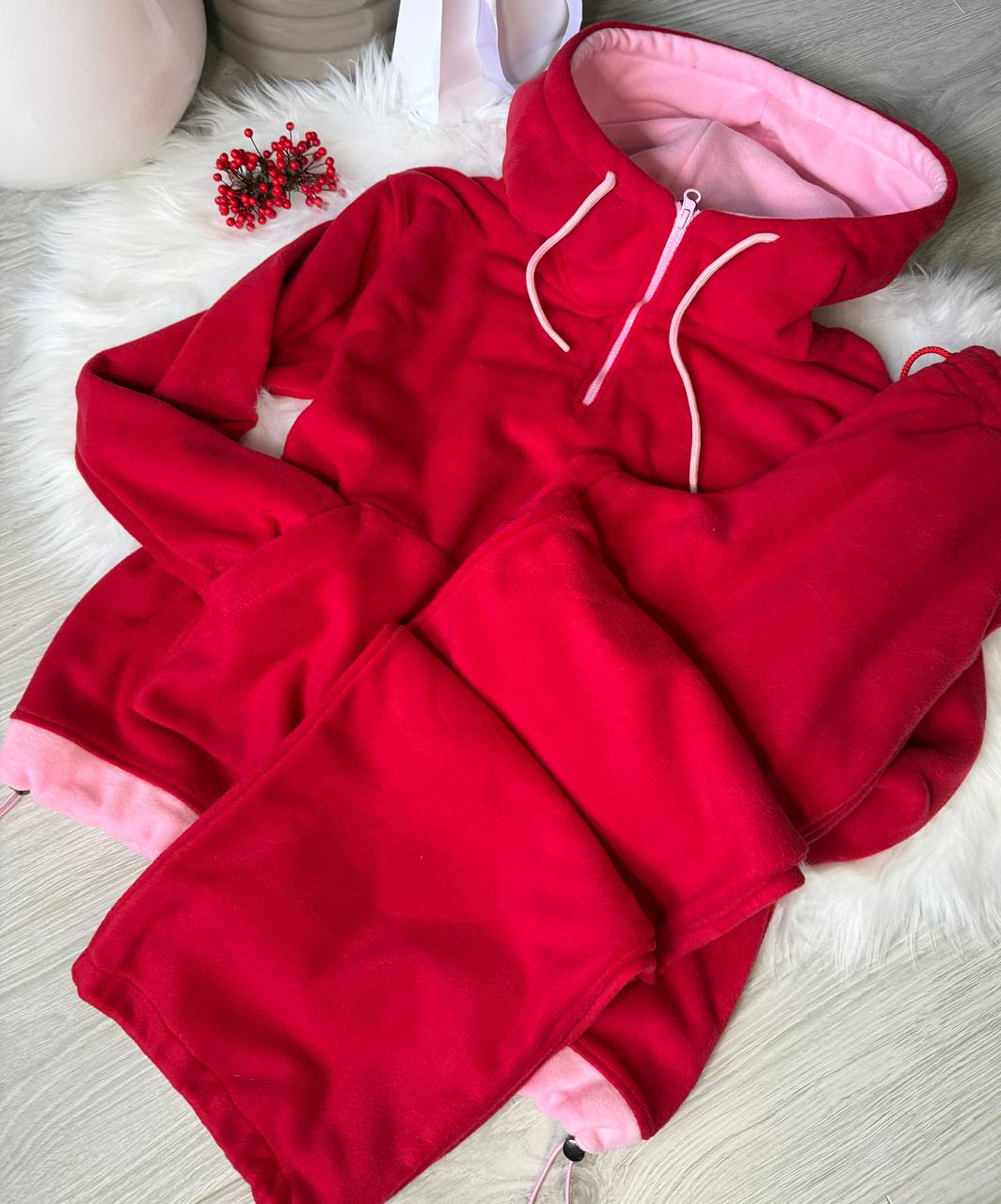 Будьте первым, кто оставил отзыв на “Теплый костюм из флиса (худи с капюшоном+карманом+брюки с карманами+низ на кулиске) красный”