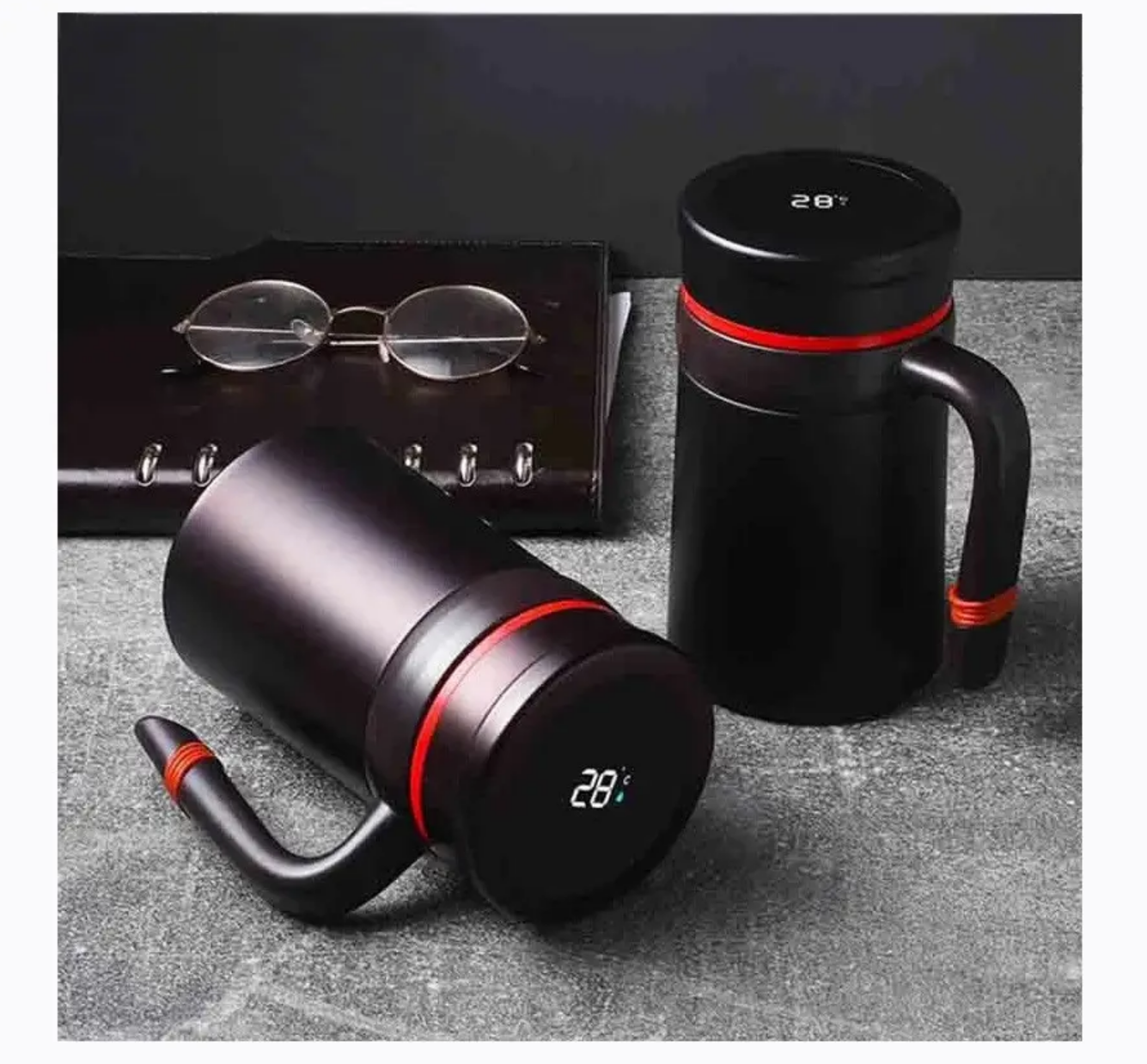 Уникальная особенность термоса – сенсорный индикатор температуры, расположенный в крышке. Согласитесь, достаточно удобно знать температуру содержимого термоса, не открывая его. Чтобы узнать температуру внутри термоса, достаточно коснуться поверхности крышки. Уденный умный чип позволяет экономить заряд, поэтому хватит на вес срок работы термоса. Умный термос с индикатором температуры имеет светодиодный экран, на котором отображается температура содержимого.