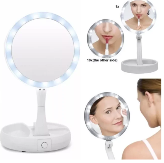 Зеркало двухсторонее с приближением для макияжа Magic Makeup с яркой LED-подсветкой — это отличный инструмент для нанесения макияжа или корекции бровей или ресниц