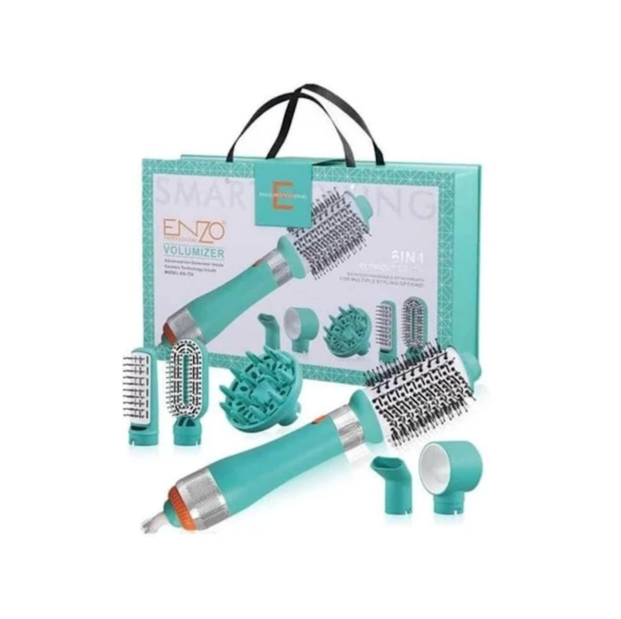 Enzo EN 750 Volumizer 6-in-1 Blow-out Brush — это универсальный инструмент для укладки волос, который объединяет функции фена, круглой щетки и объемного стайлера. Он разработан для создания профессиональных укладок в домашних условиях, добавляя объем, гладкость и блеск волосам. Вот описание продукта: