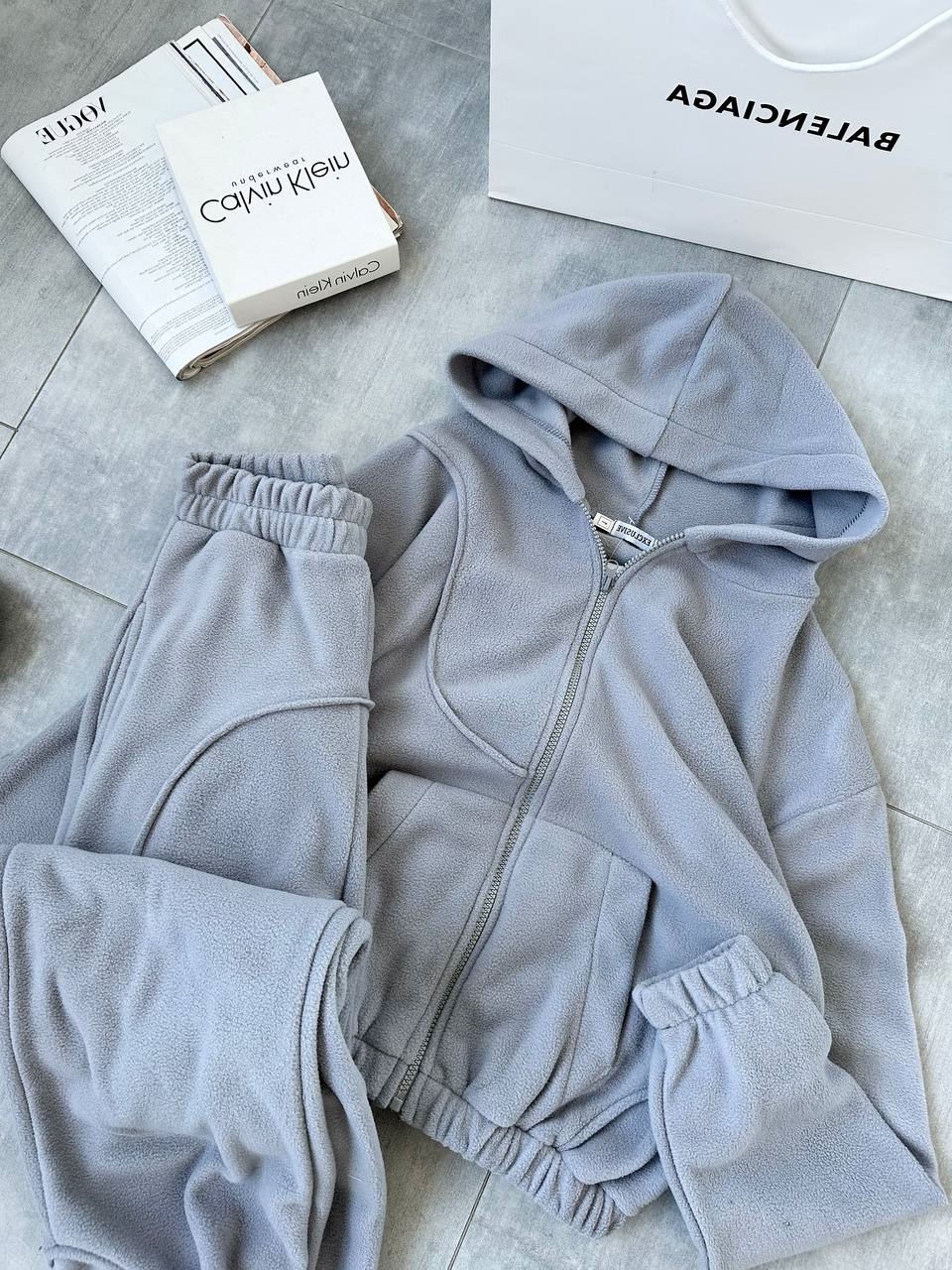 Флисовый костюм (худи на молнии с капюшоном+джоггеры) серый
