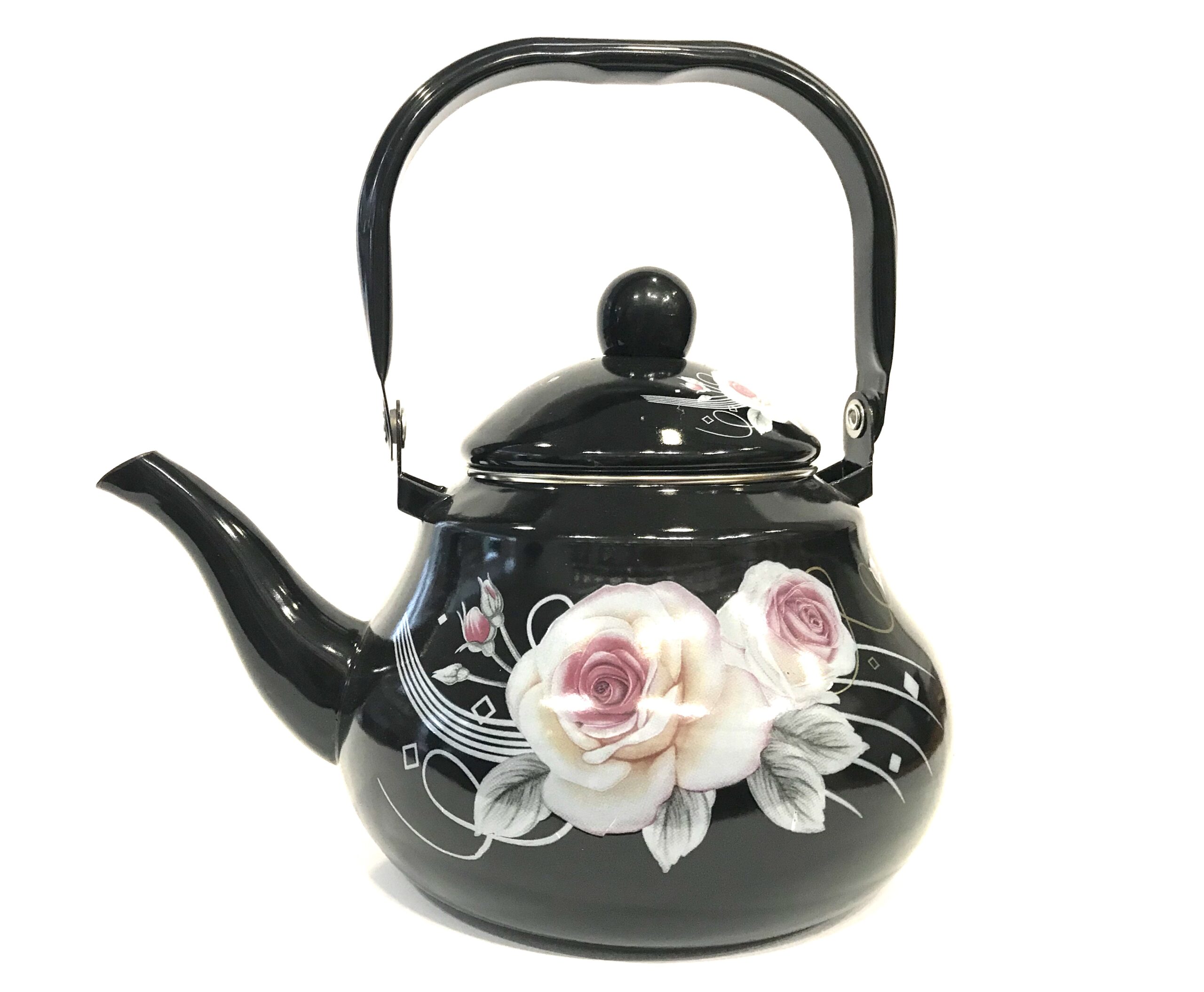 Чайник эмалированный 2.0L С ЦВЕТОЧНЫМ ПРИНТОМ ЧЕРНЫЙ BN-102