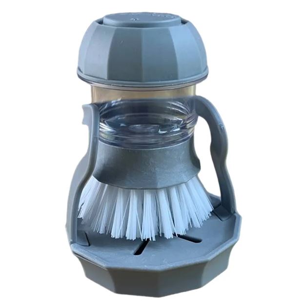 Возле кухонной раковины всегда очень мало места, и всё оно занято бутылочками, губками и прочими моющими аксессуарами. Щётка с дозатором совмещает в себе практически всё, что нужно для мытья пары десятков тарелок, чашек и сковородок. В резервуар наливается моющее средство, расход которого вы регулируете, просто нажав на кнопку сверху. Щеточка помогает отмыть даже прилипшие остатки пищи и при необходимости легко меняется.