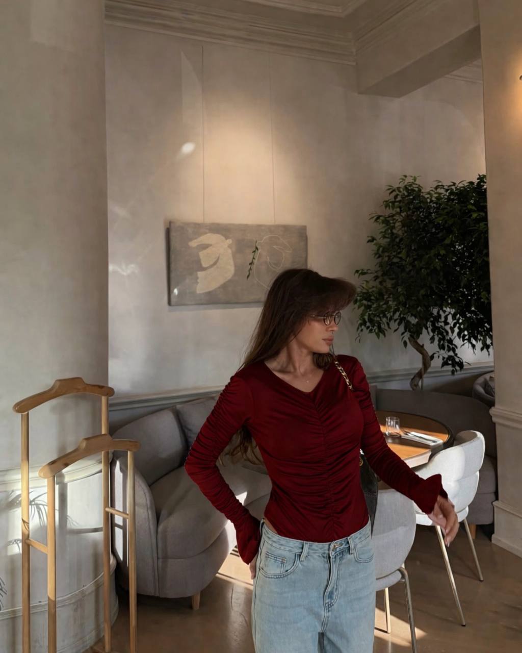 Головна » Магазин » Эластичный Боди с драппировкой бордо