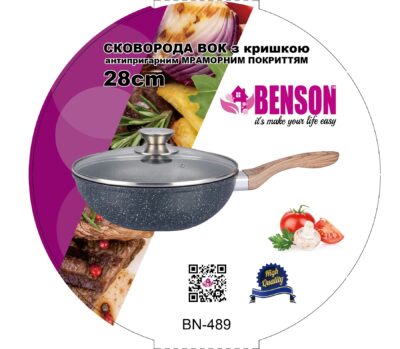 Cковорода — Вок с мраморным покрытием и крышкой Benson BN-489, диаметр — 28 см.
