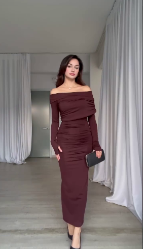 Платье, которое влюбляет. Изысканное длинное платье по фигуре идеально подойдет к любым событиям. Одевается на плечи, хорошо держится. Ткань приятна к телу и хорошо тянется.