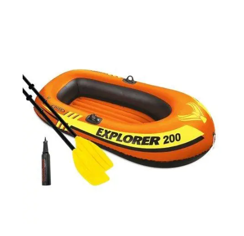 Intex Лодка EXPLORER весла, насос, 185х94х41см.Надувная полутораместная лодка EXPLORER от известной торговой марки Intex идеально подходит для любителей речных или морских прогулок и для заядлых рыболовов. Лодка изготовлена из материала Super Tough (поливинилхлорид), толщиной 0,33 мм, что делает ее стойкой к проколам и другого рода повреждениям. Еще одним преимуществом этого материала является его отличная переносимость соленой воды, масла или бензина, а также стойкость к перепадам температур и воздействию солнечных лучей. Благодаря наличию 2-х камер, при повреждении одной из них, можно будет без проблем добраться до берега. Гребная лодка имеет надувной плоский пол Wave-Beam для большего комфорта и устойчивости. С обеих сторон изделия расположены держатели для весел. Лодка легко выдерживает вес в 95 кг, а места более чем достаточно для взрослого человека и ребенка. В комплекте предусмотрены весла из прочного пластика и ручной насос. * Характеристики и комплектация товара могут изменяться производителем без уведомления