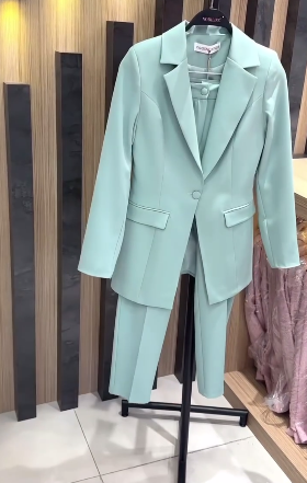 Классический женский брючный костюм (брюки прямого кроя+пиджак) мята