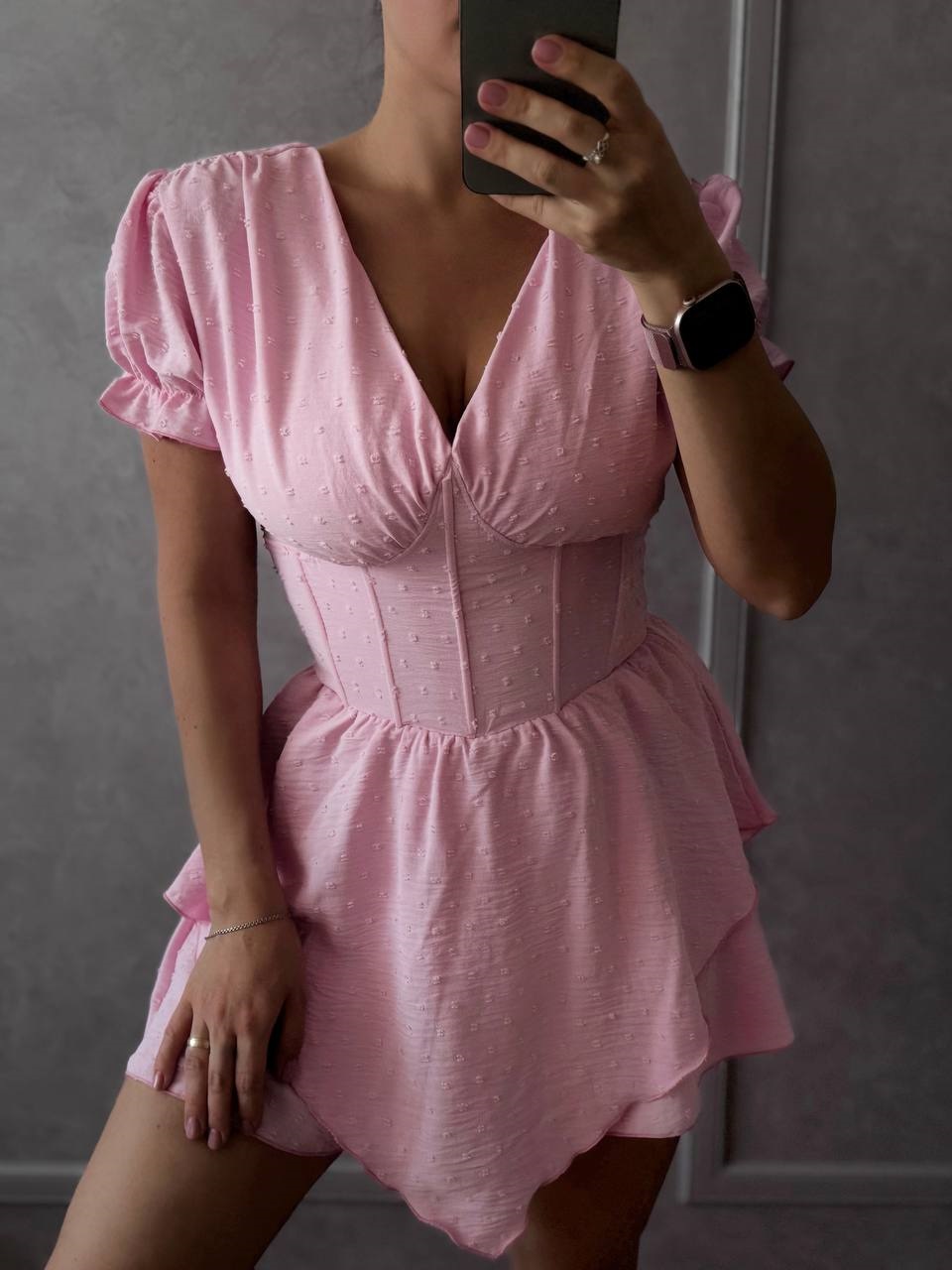 Комбинезон-платье с мягкой подкладкой на лифе и удобными шортами розовый