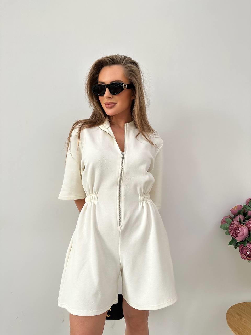 Комбинезон-ромпер на молнии с карманами+по талии резинка молочный