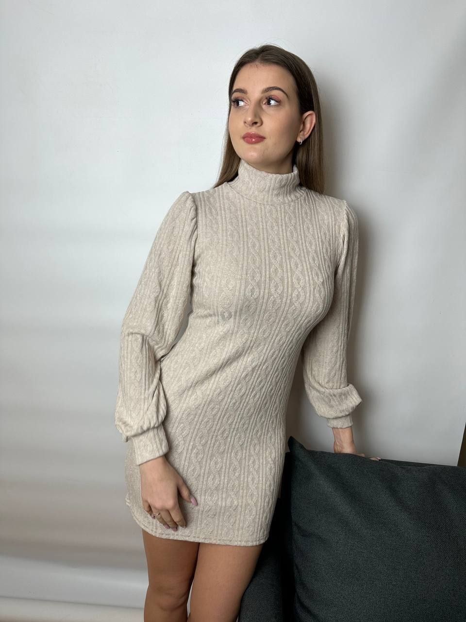 Головна » Магазин » ОДЕЖДА » ПЛАТЬЯ ТУНИКИ САРАФАНЫ » Короткое платье Ангора косичка с воротником беж