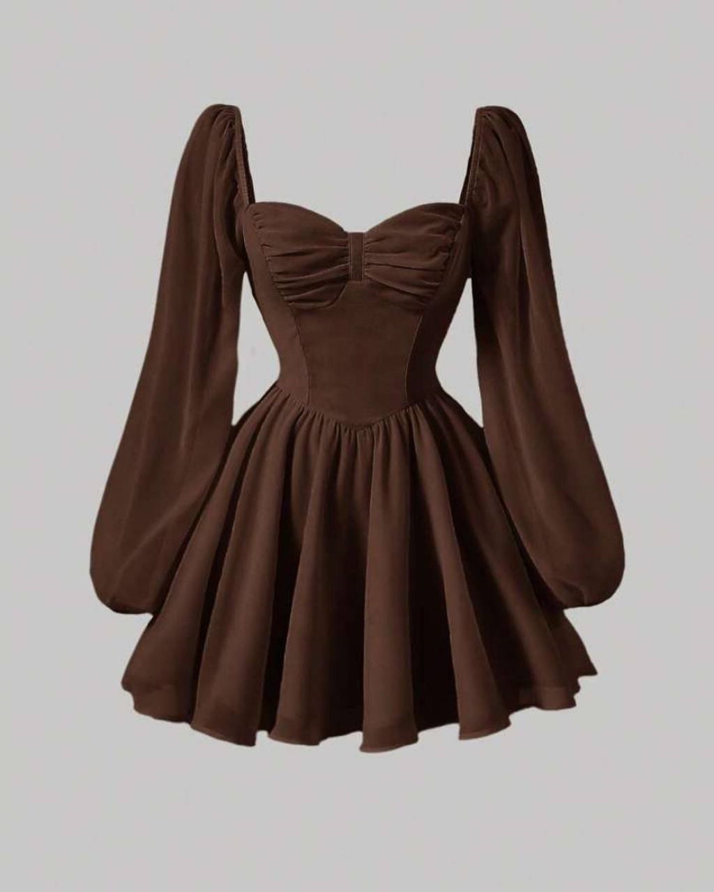 Крутое платье с пышной юбкой+красивая драппировка по груди шоколад