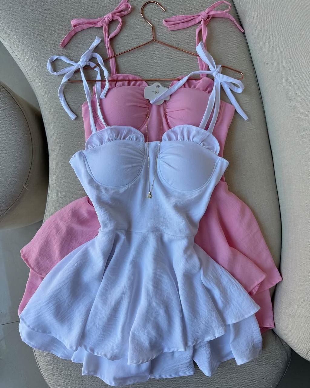 Нежное платье на бретелях с расклешенной юбкой розовый