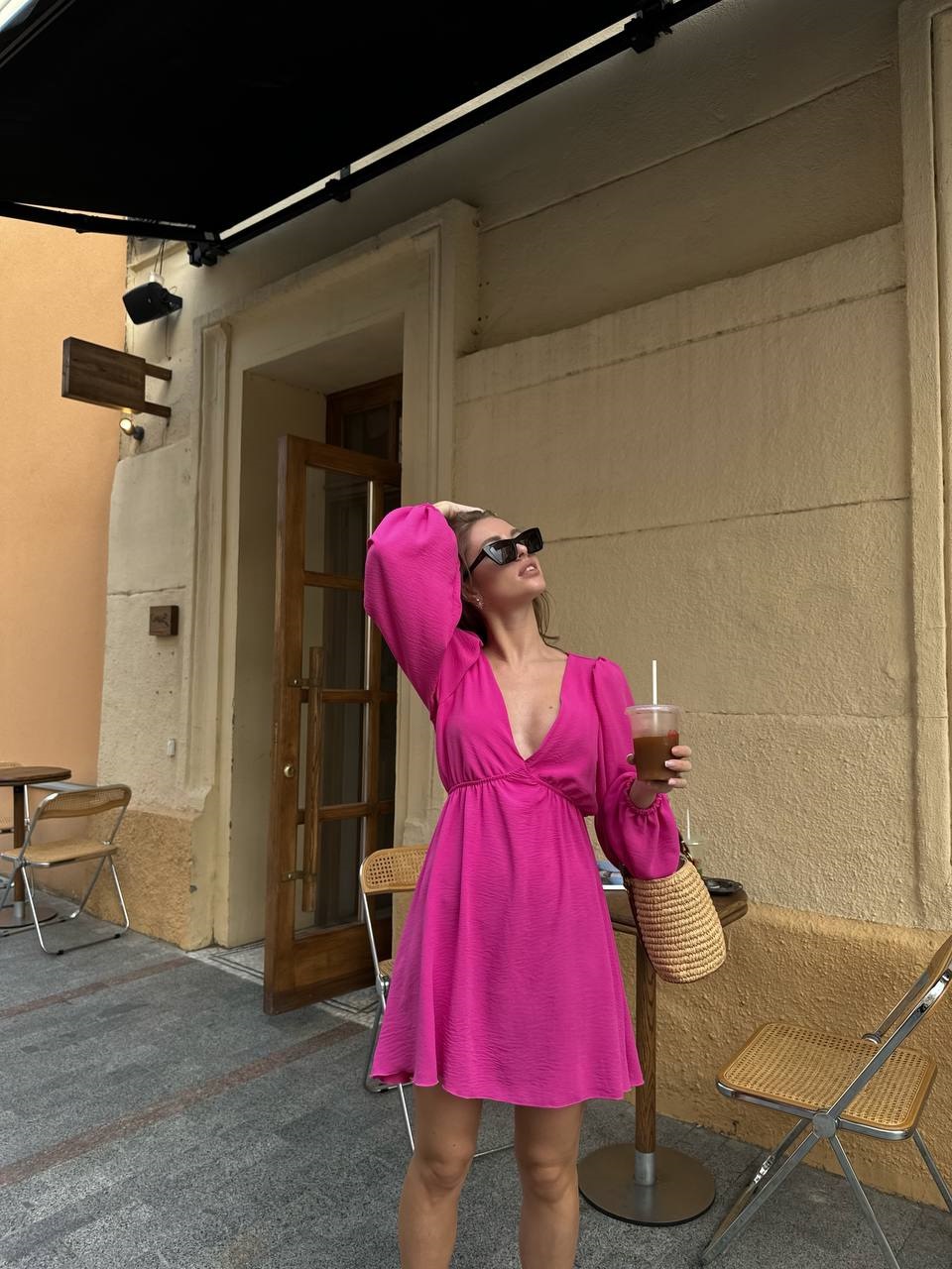 Нежное соблазнительное платье с пышными рукавами+завышенная линия талии фуксия