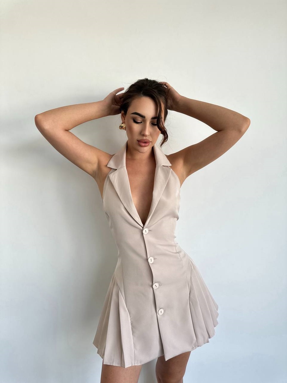 Головна » Магазин » ОДЕЖДА » ПЛАТЬЯ ТУНИКИ САРАФАНЫ » Платье на пуговицах с открытой спинкой с боковыми вставками воланов бежевый