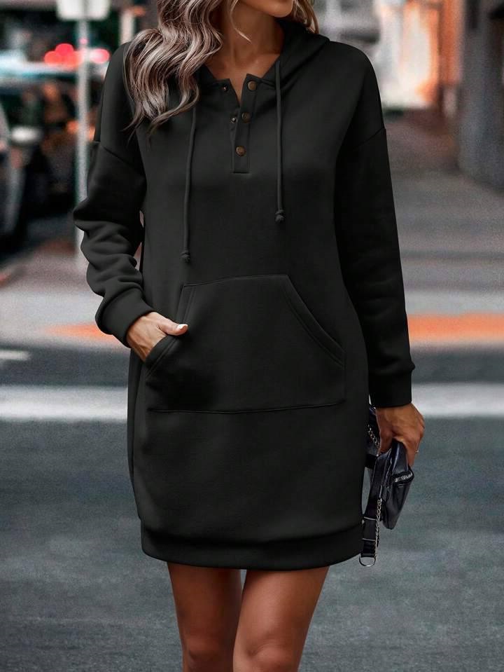 Головна » Магазин » ОДЕЖДА » ПЛАТЬЯ ТУНИКИ САРАФАНЫ » Платье-туника с капюшоном и карманом кенгуру черный