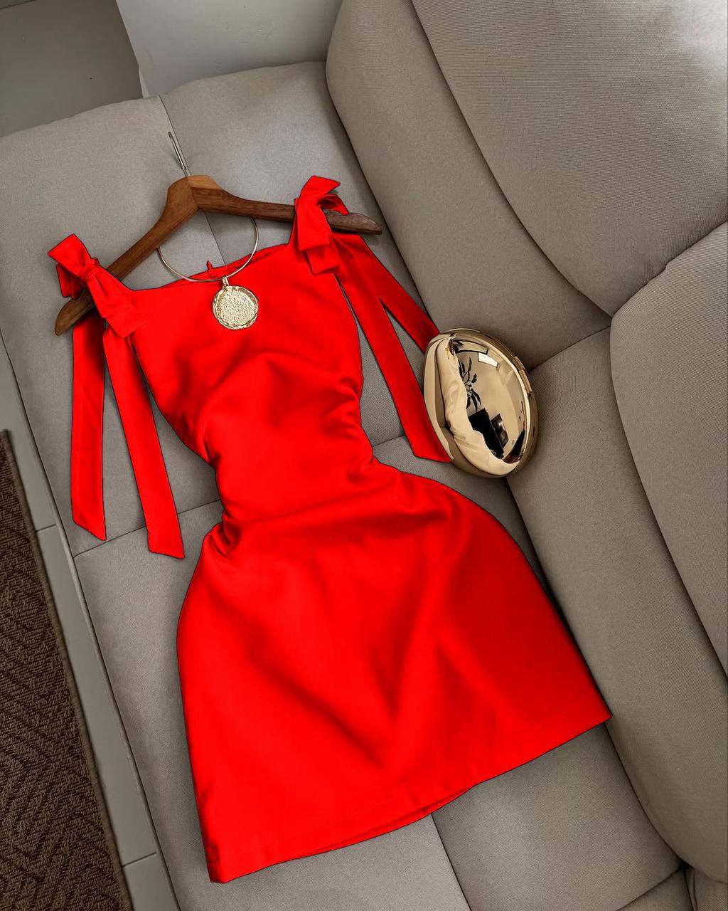 Будьте первым, кто оставил отзыв на “Роскошное мини платье с бантиками на плечах красный”