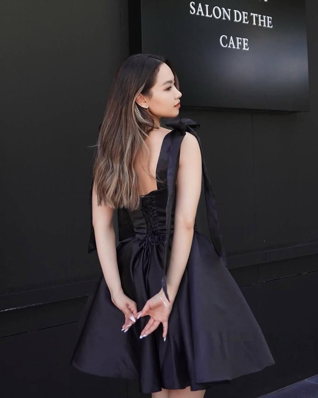 Роскошное платье со шнуровкой на спинке и очень приятной на ощупь ткани. Женская, изящная и изящная.