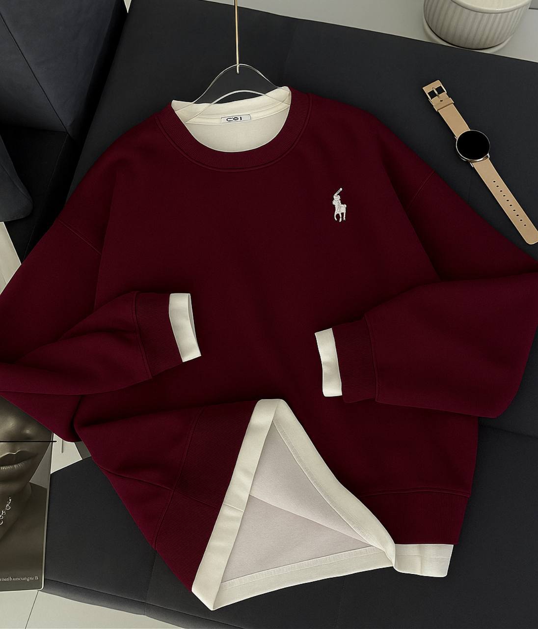 Свитшот с логотипом (контрастная вставка в виде футболки) бордо