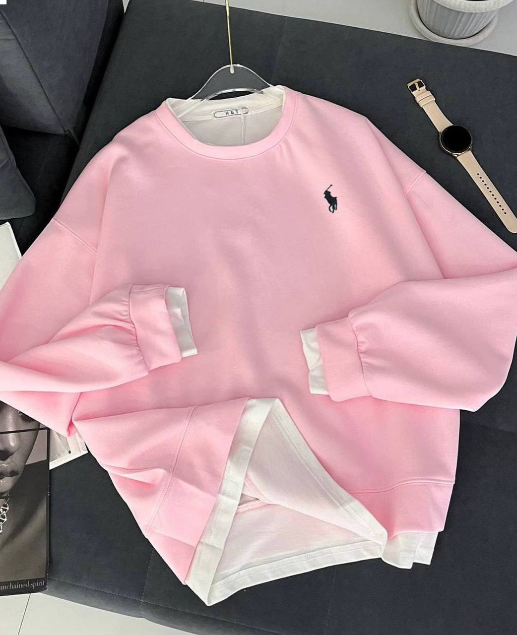Свитшот с логотипом (контрастная вставка в виде футболки) розовый