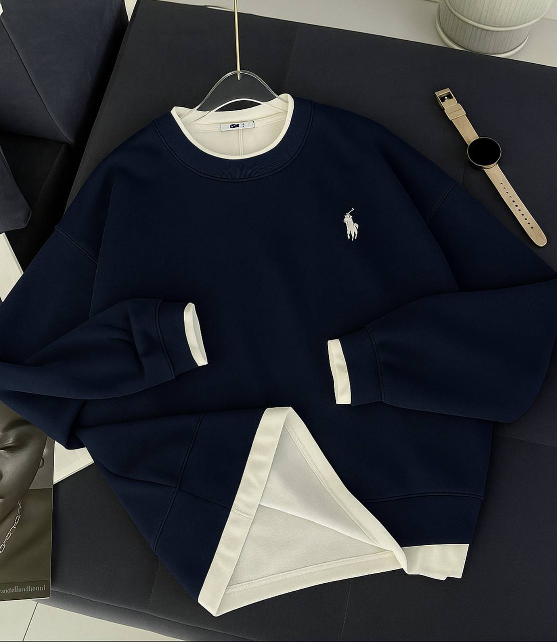 Свитшот с логотипом (контрастная вставка в виде футболки) темно-синий