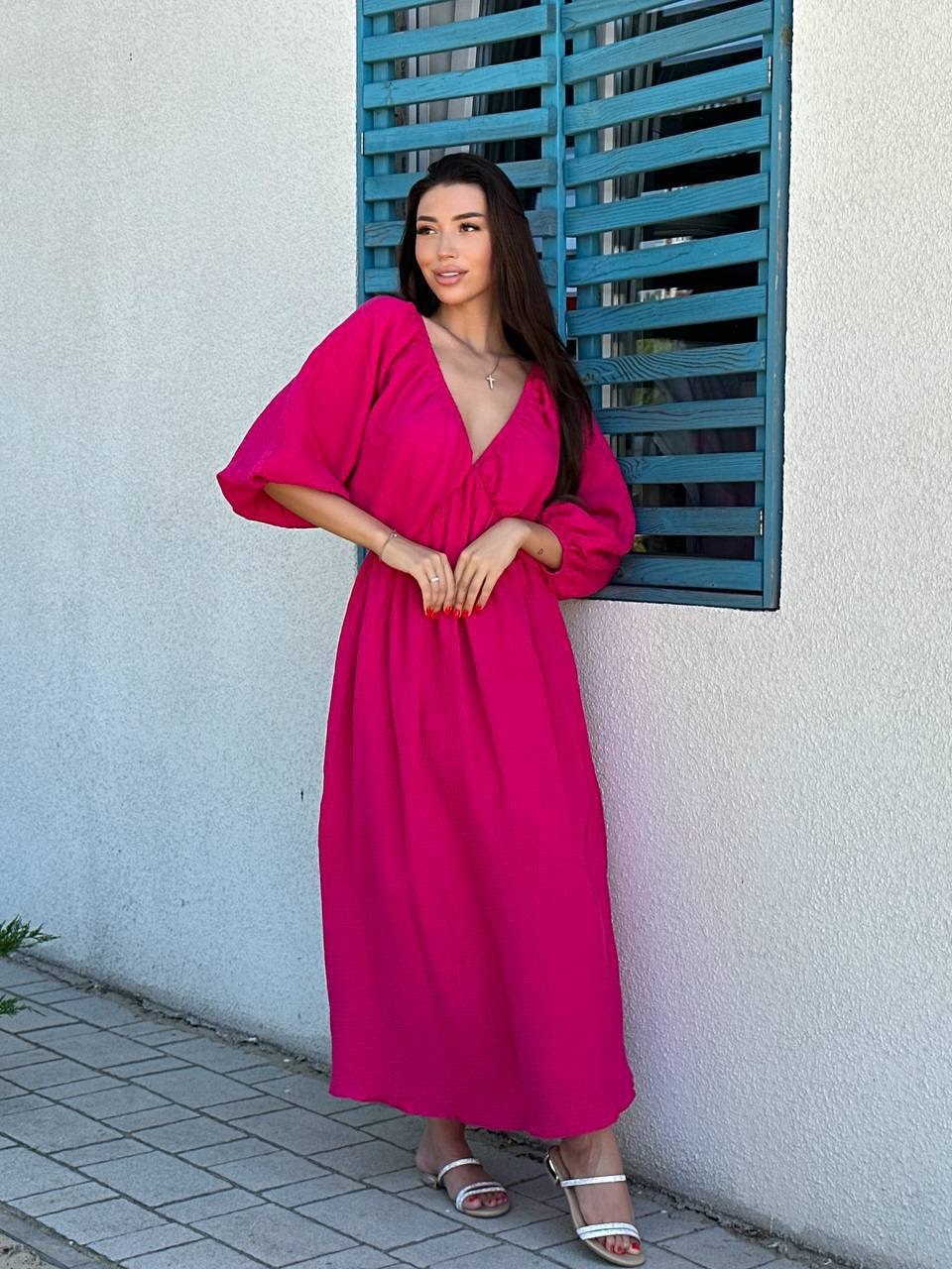 Головна » Магазин » ОДЕЖДА » ПЛАТЬЯ ТУНИКИ САРАФАНЫ » Свободное платье Муслин малина