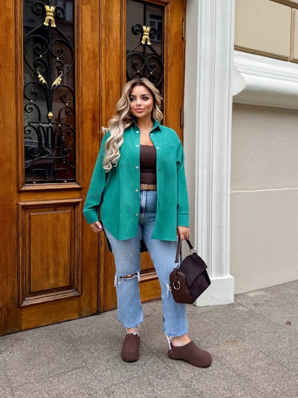Все это возможно благодаря яркой стильной вельветовой рубашке.
