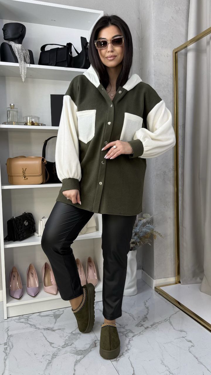 Женская рубашка свободного кроя создает комфортный и непринужденный образ. Мягкая, приятная на ощупь ткань делает ее идеальным выбором для прохладной погоды. Контрастные рукава, накладные карманы и капюшон придают модели спортивно-расслабленного вида, что делает его универсальным для создания стильных повседневных образов.
