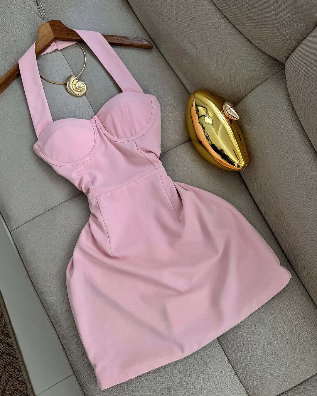 Головна » Магазин » ОДЕЖДА » ПЛАТЬЯ ТУНИКИ САРАФАНЫ » Женское мини платье (брители застегиваются на шее) пудра
