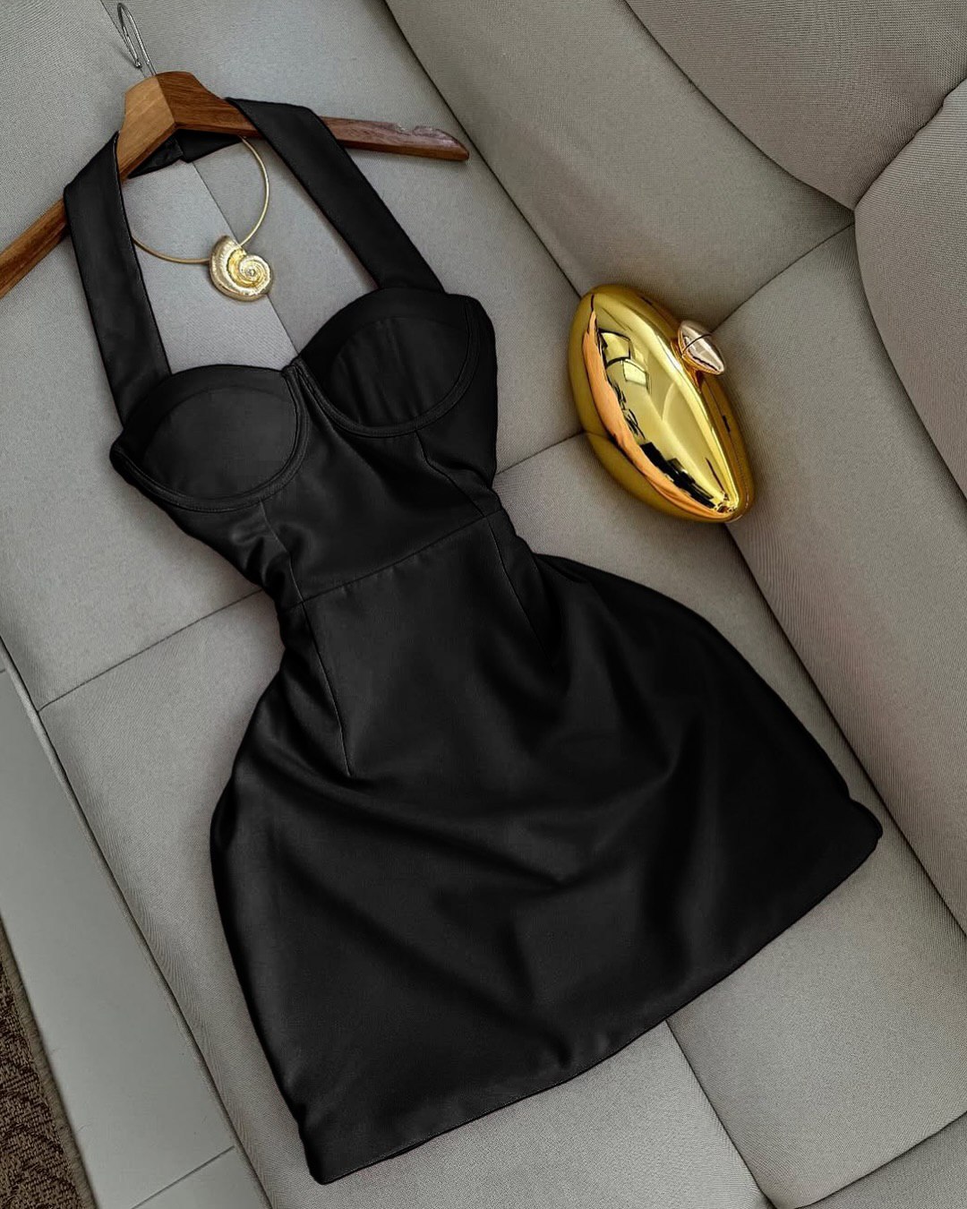 Головна » Магазин » ОДЕЖДА » ПЛАТЬЯ ТУНИКИ САРАФАНЫ » Женское мини платье (брители застегиваются на шее) черный