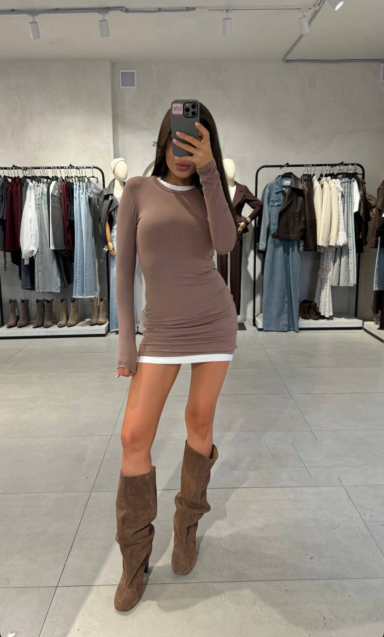 Головна » Магазин » Одяг » Сукня туніка сарафані » Эластичное трикотажное платье по фигуре длиной мини мокко