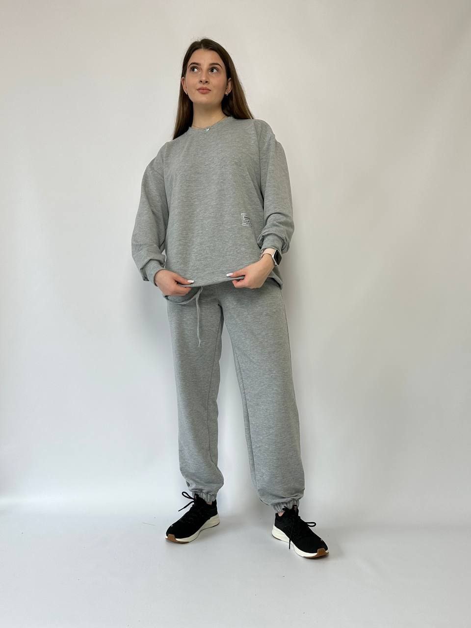 Классный спортивный костюмчик кофта на завязке + штаны двухнить серый