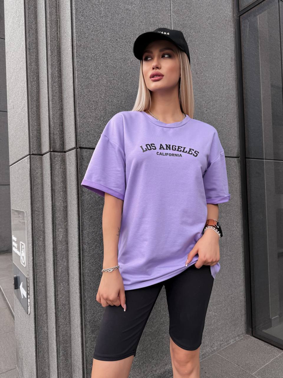 Будьте першим, хто залишив відгук “Комплект «LOS ANGELES» двойка: футболка свободная со спущенным рукавом+велосипедки лаванда”“