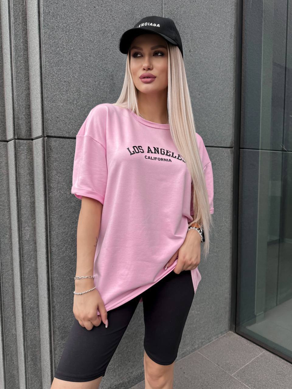 Будьте першим, хто залишив відгук “Комплект «LOS ANGELES» двойка: футболка свободная со спущенным рукавом+велосипедки розовый”“