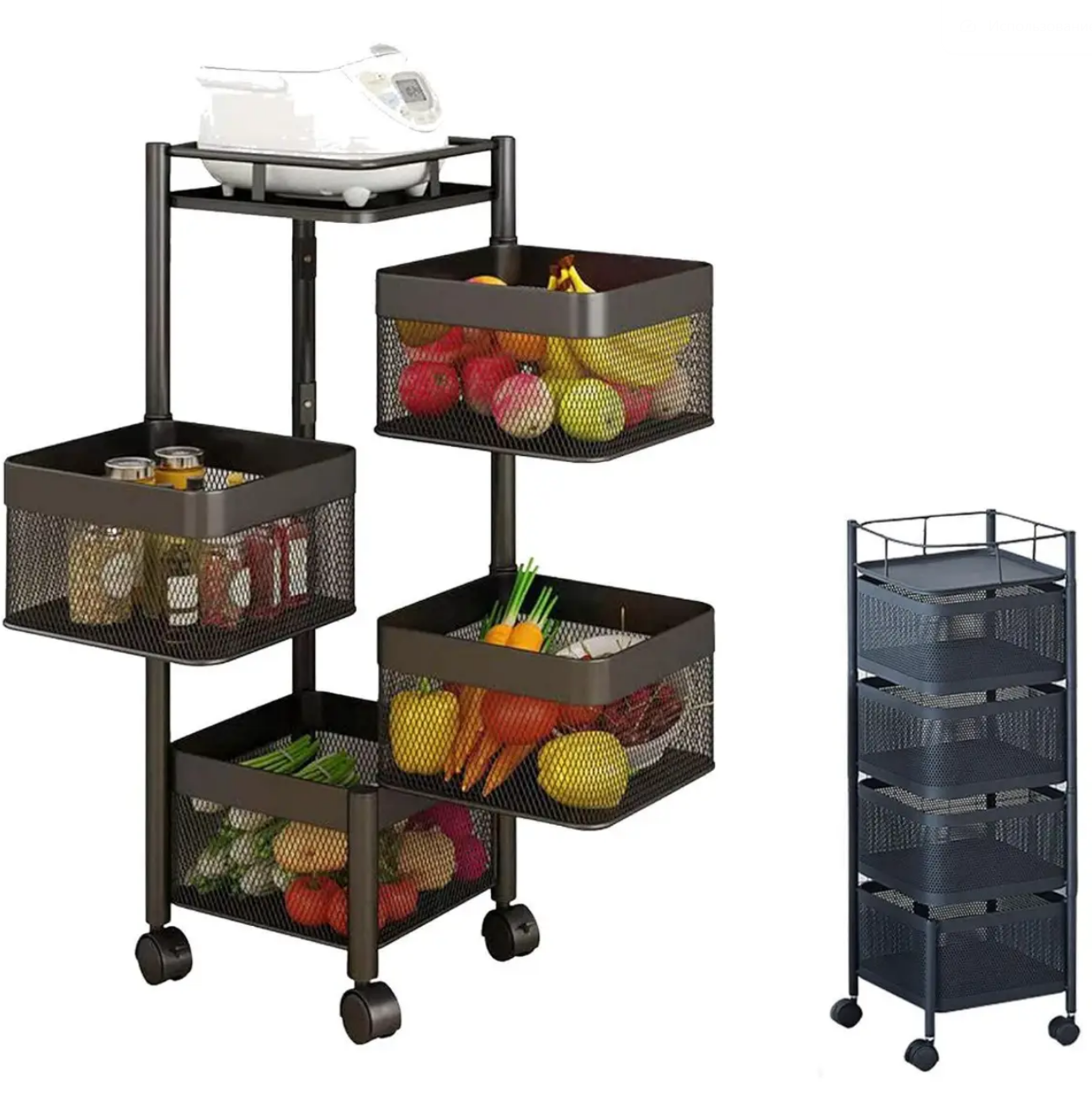 Эта функциональная этажерка снабжена вращающимися колесиками, которые не оставляют следов на полу. Вместительные полки можно использовать для бутылок. Поможет вам создать интерьер в стиле Прованс, добавит лёгкости и элегантности в обстановку вашего дома. Расстояние между корзинами позволит разместить как габаритные предметы, так и мелкие бытовые аксессуары. Глубокие, съемные корзинки обеспечивают безопасное и удобное хранение. Максимальная нагрузка на корзины — до 5 кг.