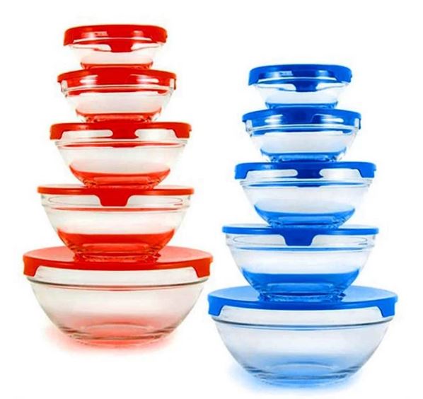 Декорированные универсальные стеклянные судки с пластиковой крышкой.