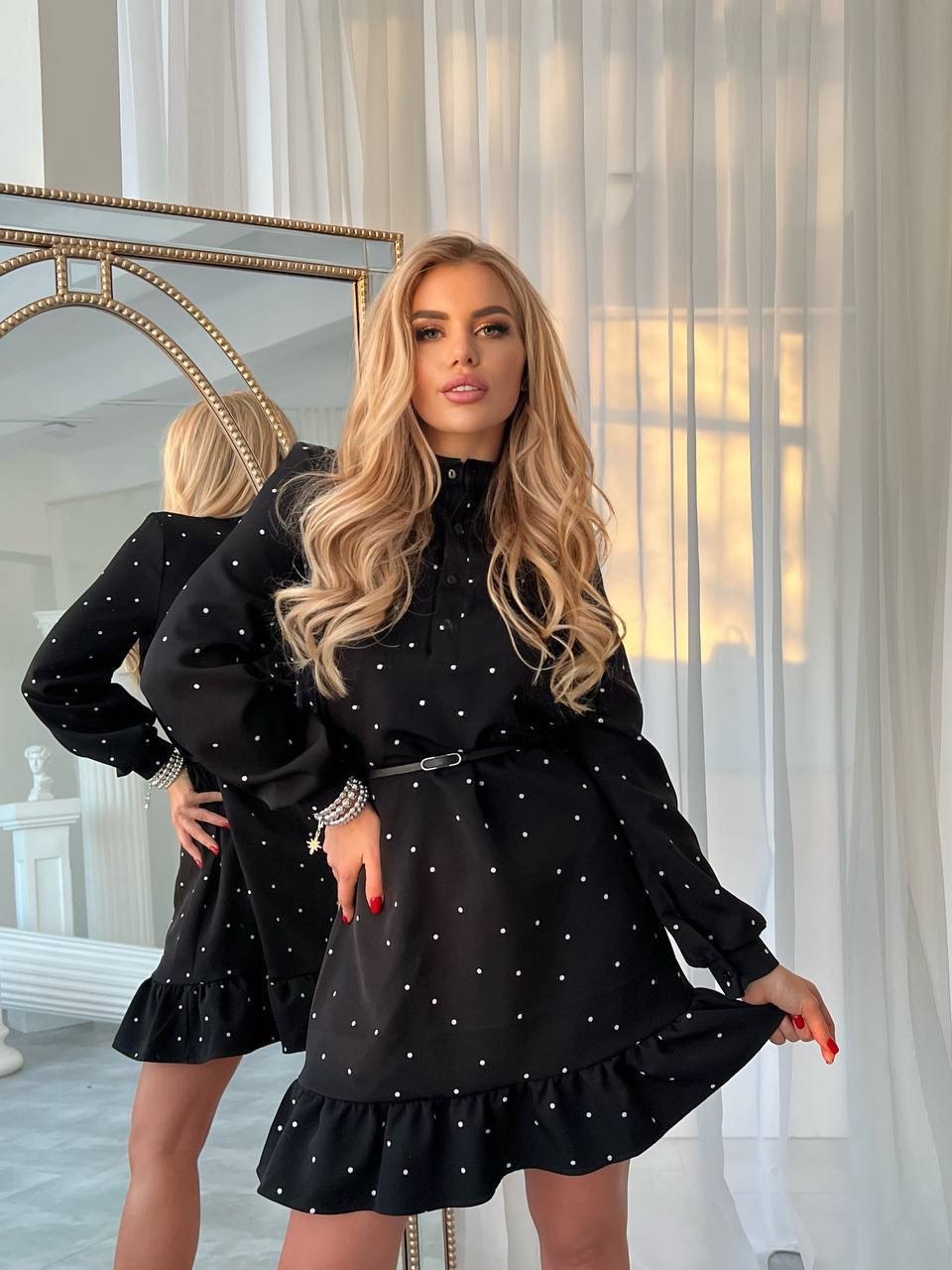 Модель свободного кроя с длинным рукавом, манжет и планка по груди застегиваются на пуговицы. Можно носить как с поясом, так и без. Пояс входит в комплект.