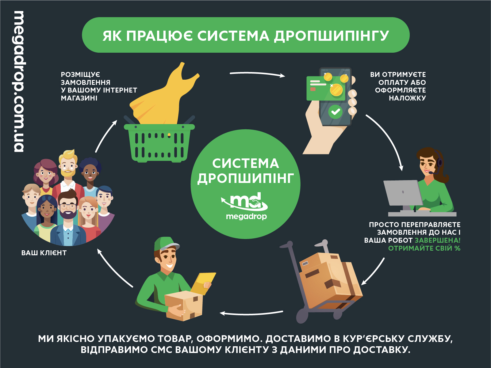 Дропшиппинг – это прямая поставка от поставщика, то есть нас – MegaDrop – к покупателю.