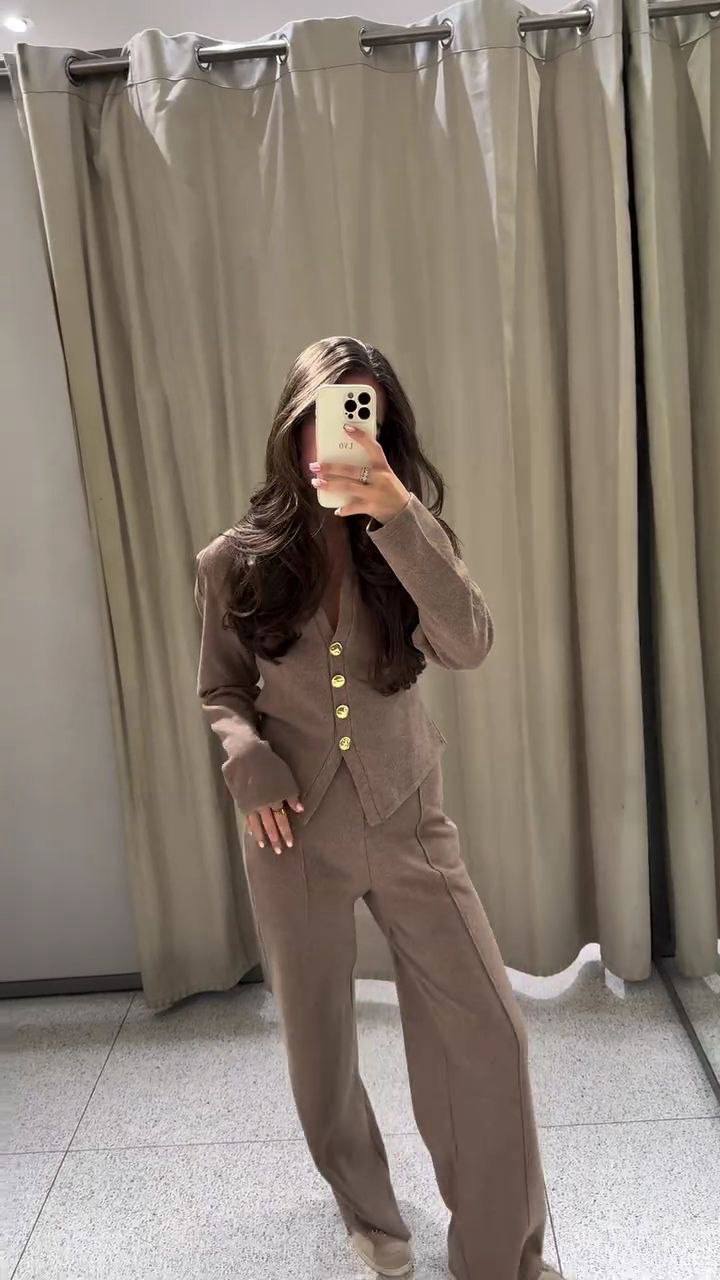Ангоровый костюм: кофта на пуговицах+прямые штаны мокко