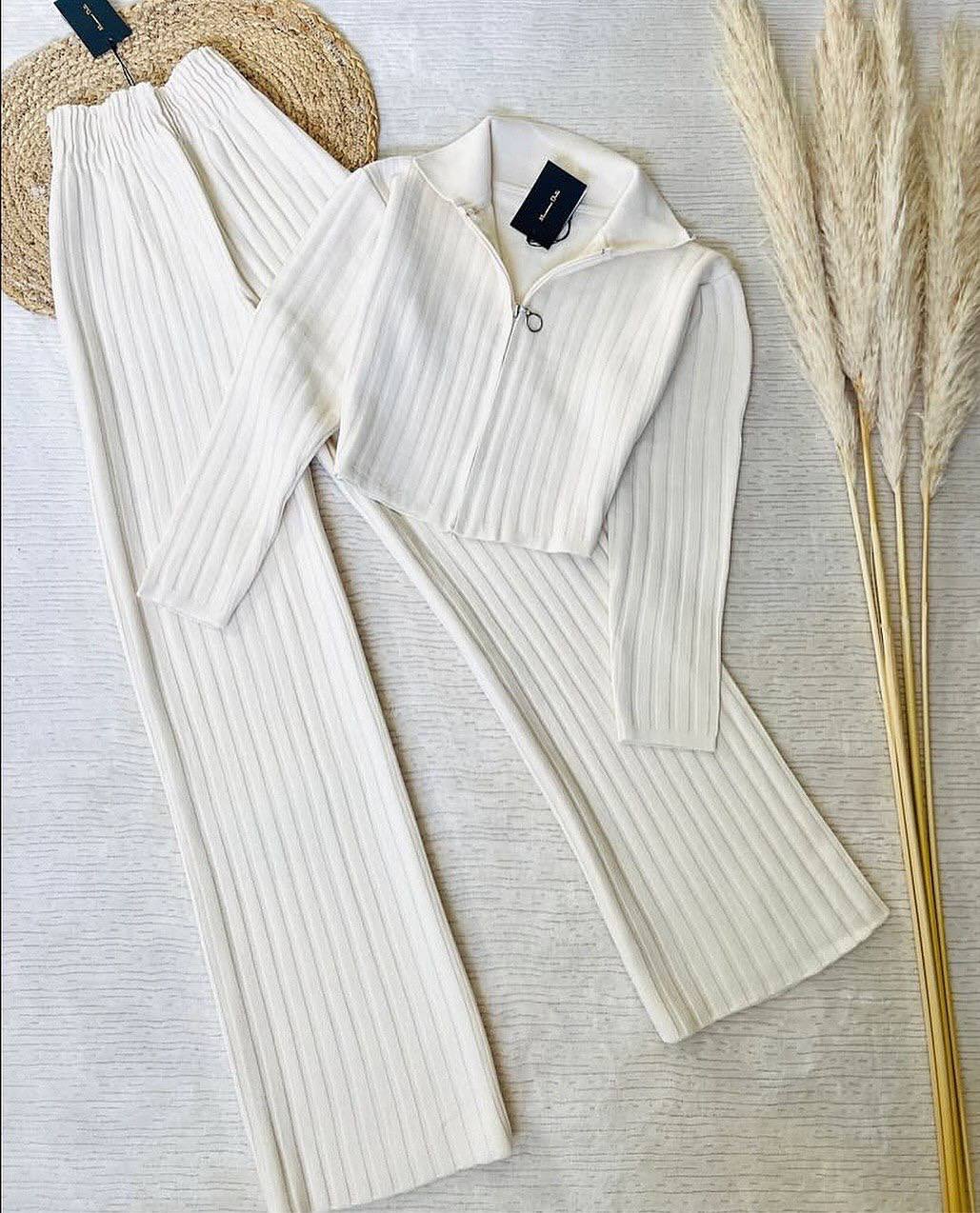 Будьте первым, кто оставил отзыв на “Базовый костюм Ангора: топ на молнии+брюки прямые молоко”