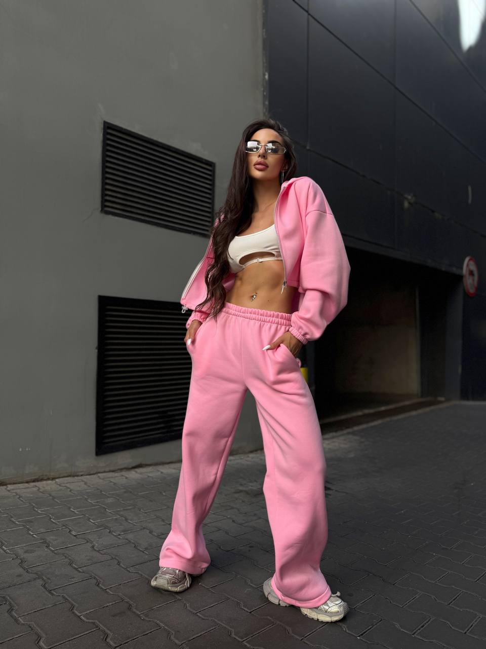 Базовый костюм: Брюки свободного прямого кроя+кофта на затяжках (трехнить на флисе) барби