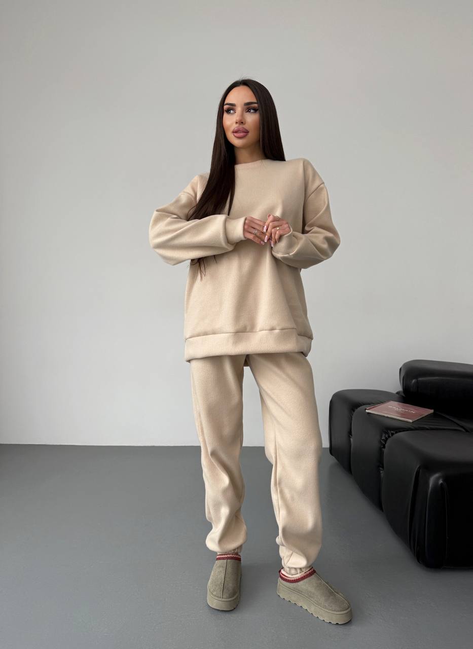 Базовый костюм оверсайз из ангоры (кофта+брюки) бежевый