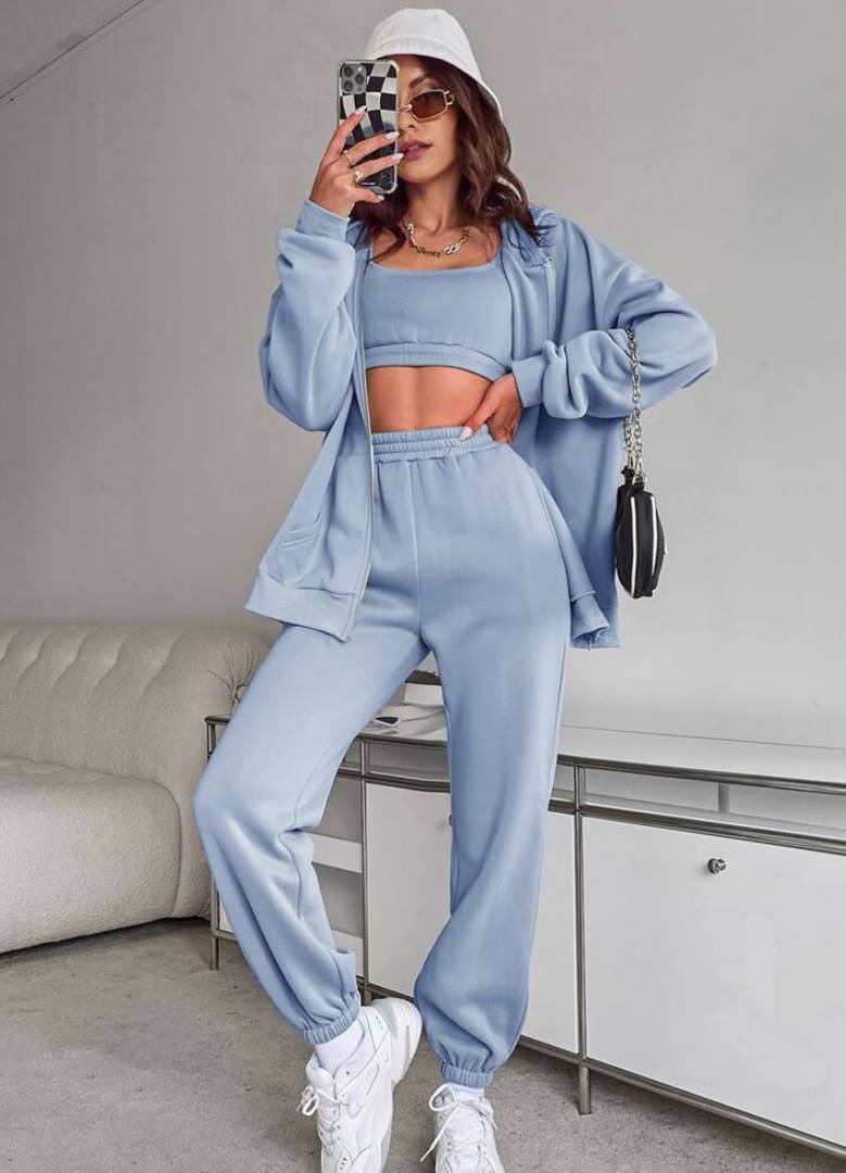 Будьте первым, кто оставил отзыв на “Базовый однотонный костюм для прогулки: кофта+штаны голубой”