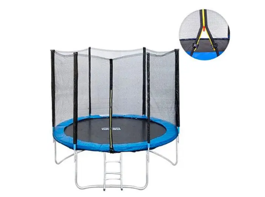 — диаметр батута: 244 см — высота батута: 66 см — пружины: 48 шт — количество опор: 3 шт W-образных — высота сетки 150 см —