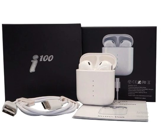 еспроводные Блютуз стерео наушникиTWS i100 с умным боксом для зарядки.