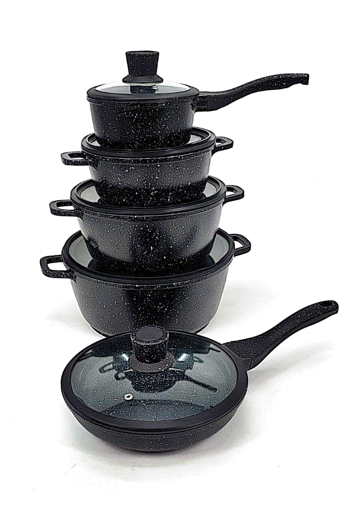 Большой набор Кастрюль МРАМОР с ковшиком и сковородой